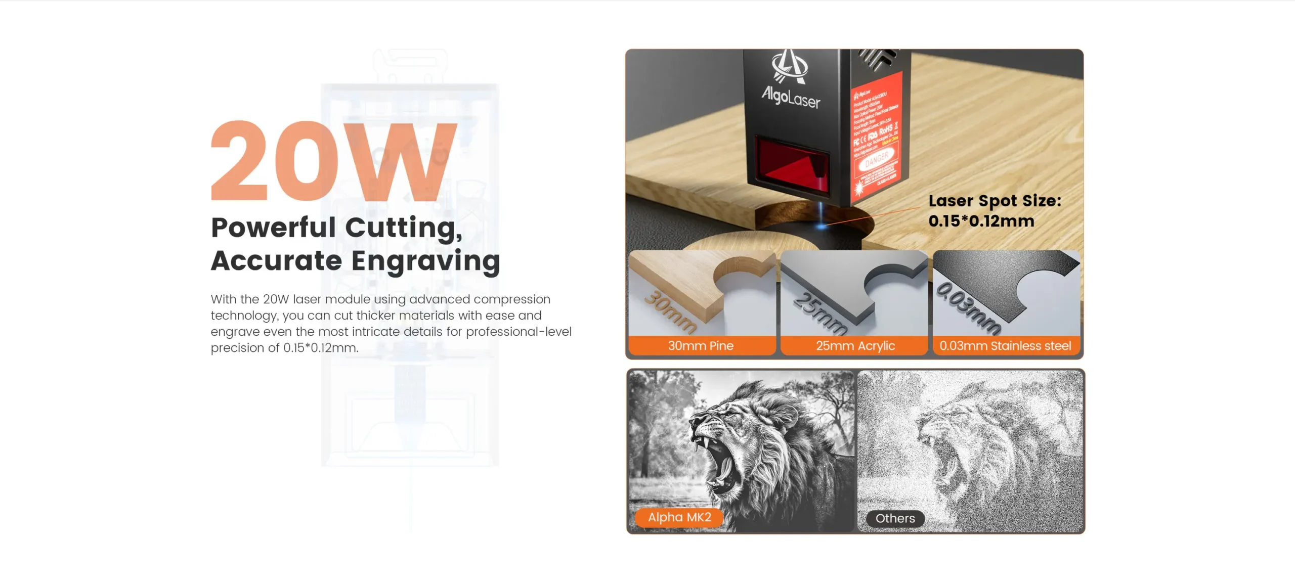 AlgoLaser Alpha MK2 20W Diode Laser Engraver And Cutting