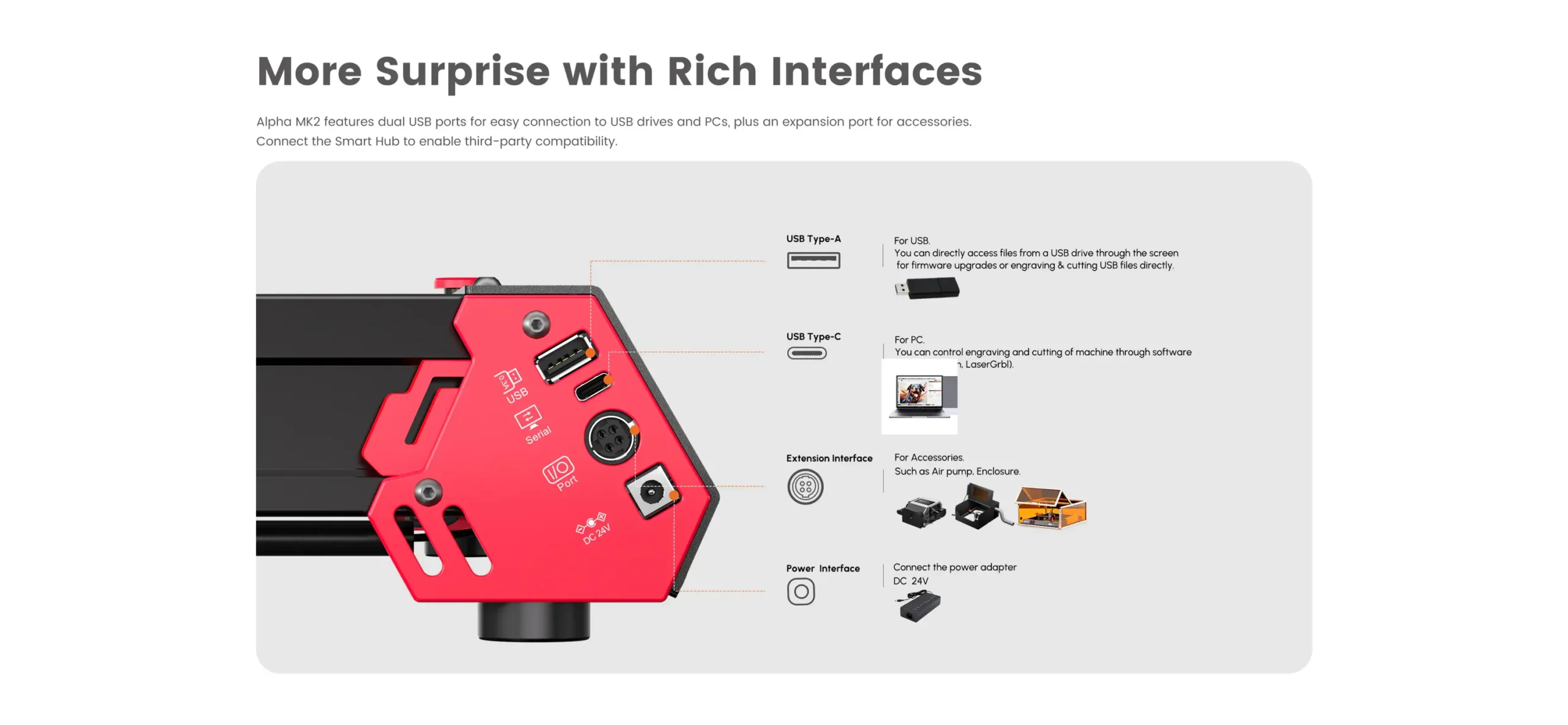 | Available Laser Modules | 10W Laser Modules (Real Luminous Power: 10,000mw) Second-generation COS Technology 22W Laser Modules (Real Luminous Power: 22,000mw) |