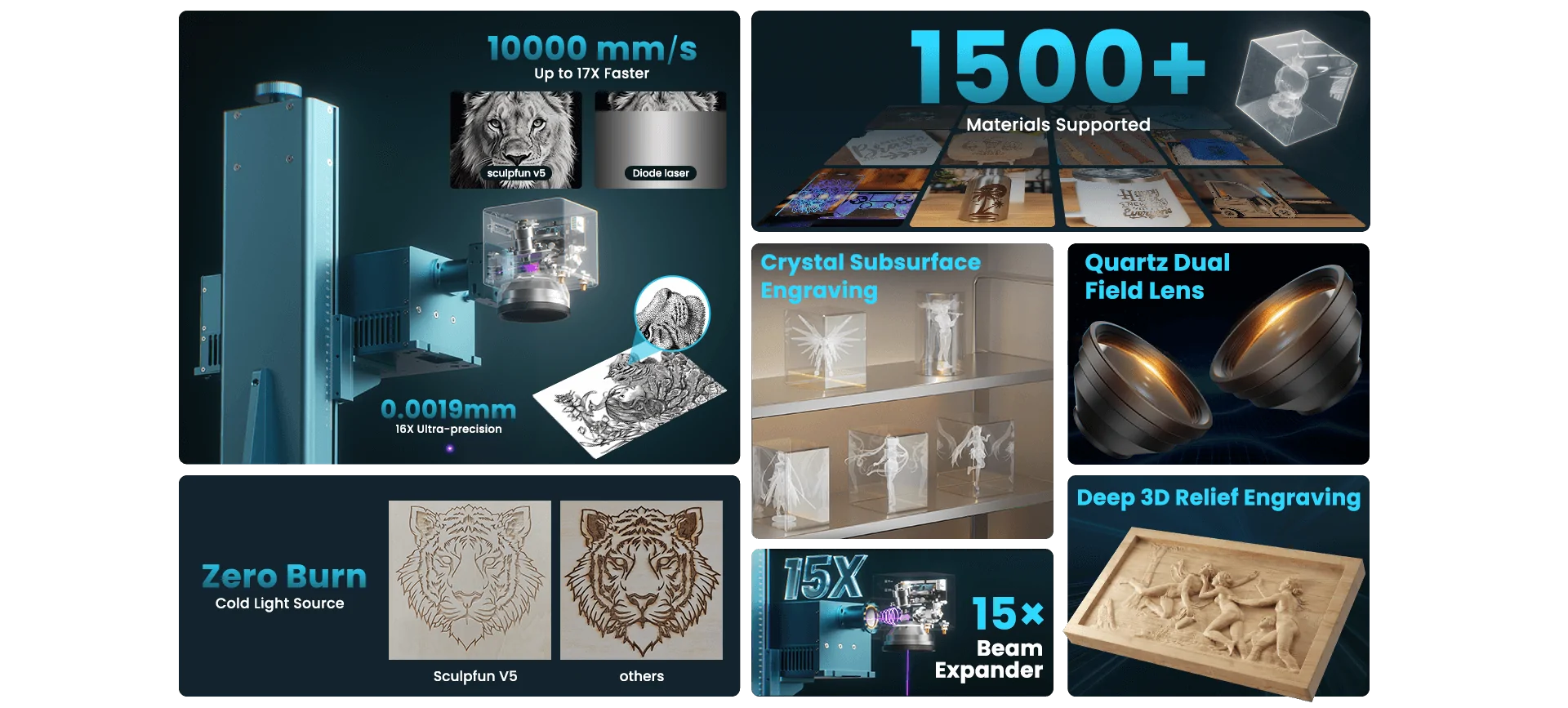SGD Laser, our self-developed software, is the first 4-in-1 solution that integrates subsurface engraving, 3D relief, curved surface engraving, and flat processing. It fully unlocks the potential of the Sculpfun V5. We’ve also ensured compatibility with LightBurn.