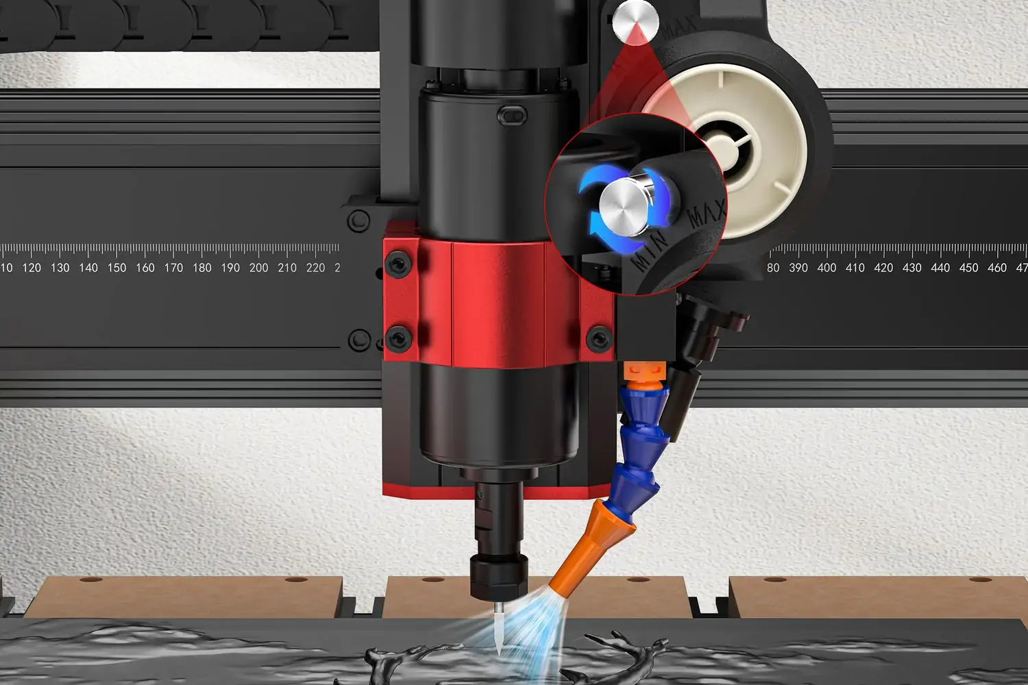 Note: Using this kit will reduce the machine’s engraving area,with the reduced size depending on the user’s machine. For the 6050 and H40, the X-axis direction will be reduced by approximately 90mm.