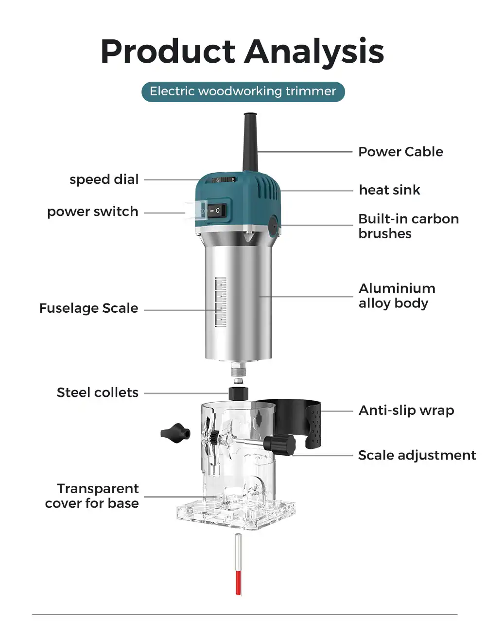 Twotrees 800W 30000RPM Wood Router Machine